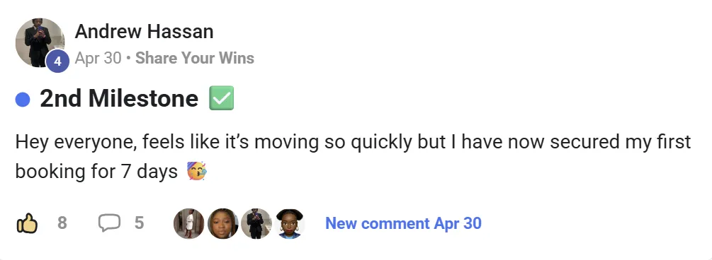 While results can vary based on individual effort and personal circumstances, many of my clients have secured highly profitable Airbnbs within their first 4-8 weeks, and others took up to 16 weeks.