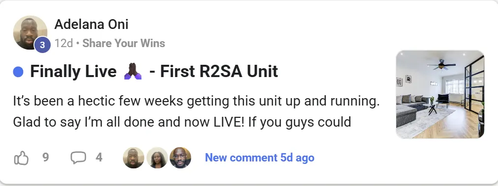That said, my aim is to have 'Your First Airbnb' pay for itself within the next 3-6 months. Therefore, If you follow all the instructions I set out, have the necessary capital available for property acquisition, and are still unable to secure a profitable Airbnb within this timeline, please email [email protected] and I will send you access details to further additional support material at no extra investment or cost. This material will allow you to become a successful deal sourcer for other property investors, in addition to the property management knowledge you learn via 'Your First Airbnb'.